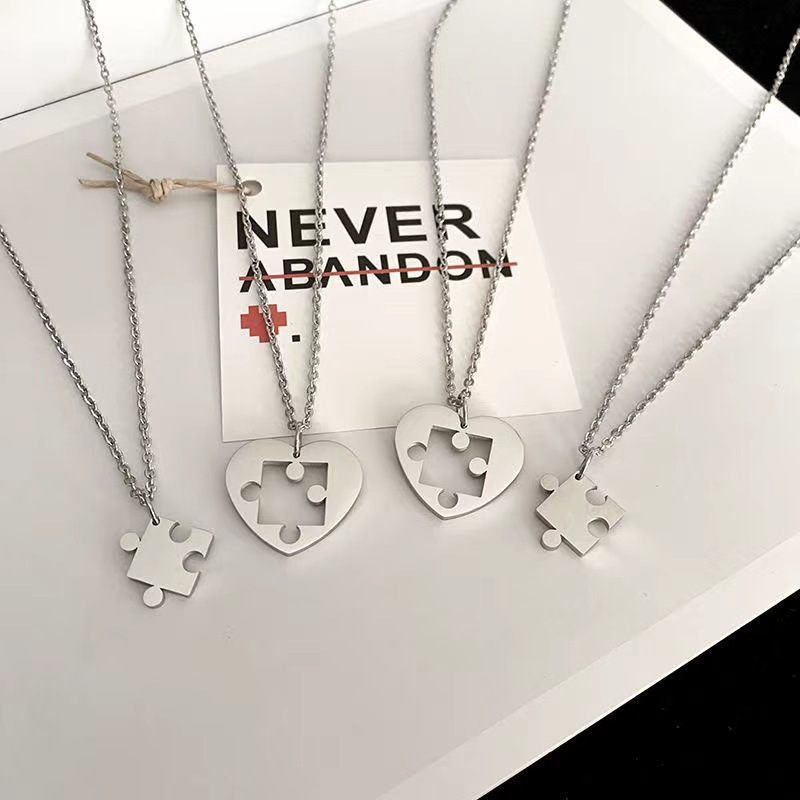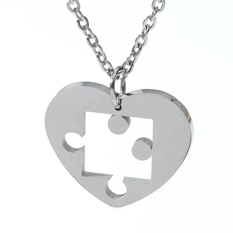 Zink Alloy Pussel par halsband, Hjärta, platina pläterad, 2 stycken & för par, Längd Ca 23.6 inch, Säljs av Ställ