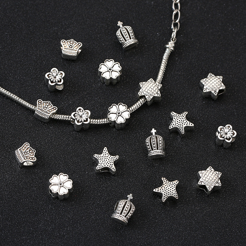 1:Starfish (about length: 1.2cm width: 1.2cm aperture: 0.5cm)2:Crown (about length: 1.8cm width: 1cm aperture: 0.45cm)3:Four-leaf clover (about length: 1cm width: 1cm aperture: 0.45cm)4:Pope's crown (about length: 1.2cm width: 0.6cm aperture: 0.4cm)5:Sakura (about length: 0.9cm width: 0.9cm aperture: 0.6cm)6:Sunflower (about length: 1.2cm width: 1.2cm aperture: 0.6cm)7:Bracelet (about total length: 21cm)
