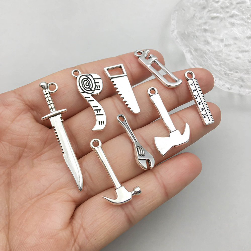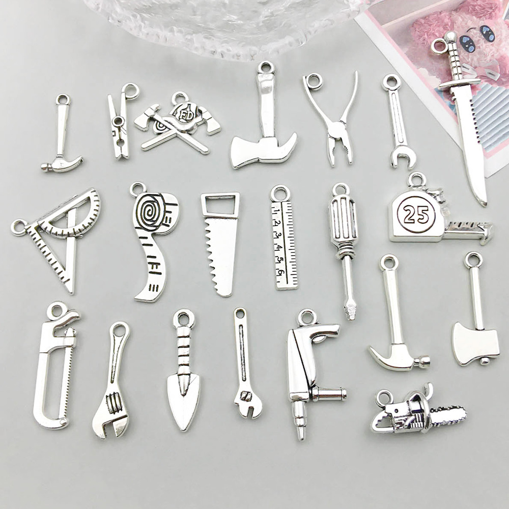 1:Mix 20pcs2:1 ancient silver wrench 7*24mm-0.8g-52743:1 ancient silver axe 16*26mm-1.6g-85204:1 ancient silver hammer 13*25mm-1.1g-85215:1 ancient silver screwdriver 6*31mm-1.9g-85226:1 ancient silver wrench 6*24mm-0.5g-85237:1 ancient silver saw 9*23mm-1.1g-85248:1 ancient silver saw 8*30mm-1.1g-85259:1 ancient silver impact drill 7*27mm-2.2g-852610:1 ancient silver pliers 10*22mm-0.8g-852711:1 ancient silver shovel 7*24mm-1g-852812:1 ancient silver tape measure 10*27mm-1.5g-871013:1 ancient silver tape measure 23*18mm-1.6g-1118214:1 ancient silver axe 10*25mm-1.2g-1118315:1 ancient silver wrench 6*24mm-0.6g-1118416:1 ancient silver hammer 19*9mm-0.5g-1121217:1 ancient silver axe 19*16mm-1.3g-1131218:1 ancient silver clip 5*15mm-0.6g-1131919:1 ancient silver dagger 10*44mm-1.6g-1133320:1 ancient silver ruler 5*24mm-0.8g-12157-221:1 ancient silver ruler 20*21mm-1.4g-1215822:1 ancient silver chainsaw 20*9mm-1.5g-15483