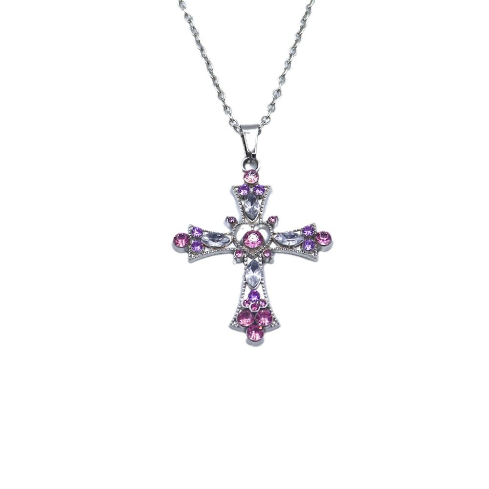 Zink Alloy tröja kedja halsband, Cross, guldfärg pläterade, mode smycken & med strass, fler färger för val, Säljs av PC