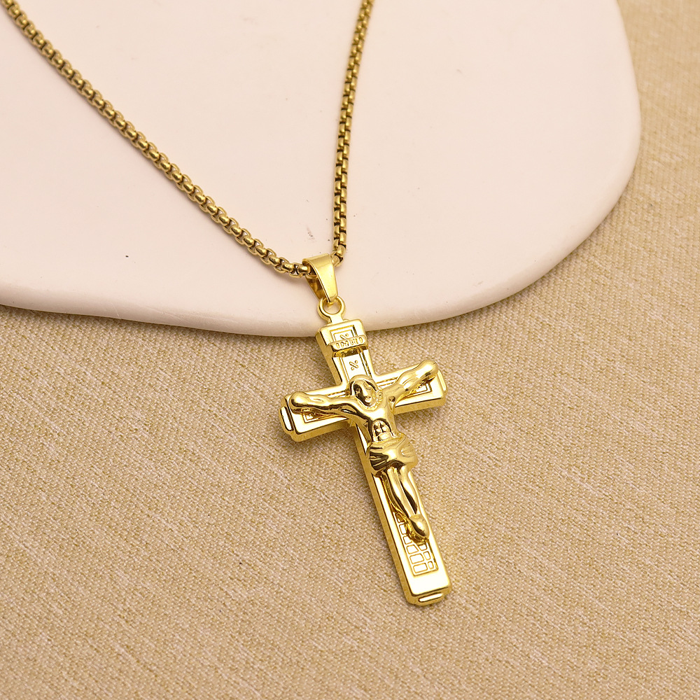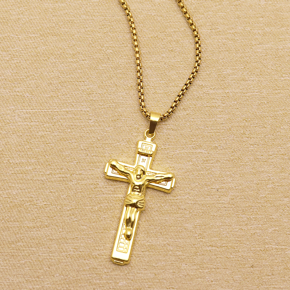 Zink Alloy tröja kedja halsband, Cross, guldfärg pläterade, mode smycken, gyllene, Säljs av PC