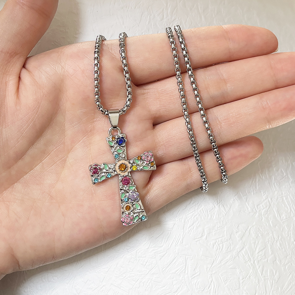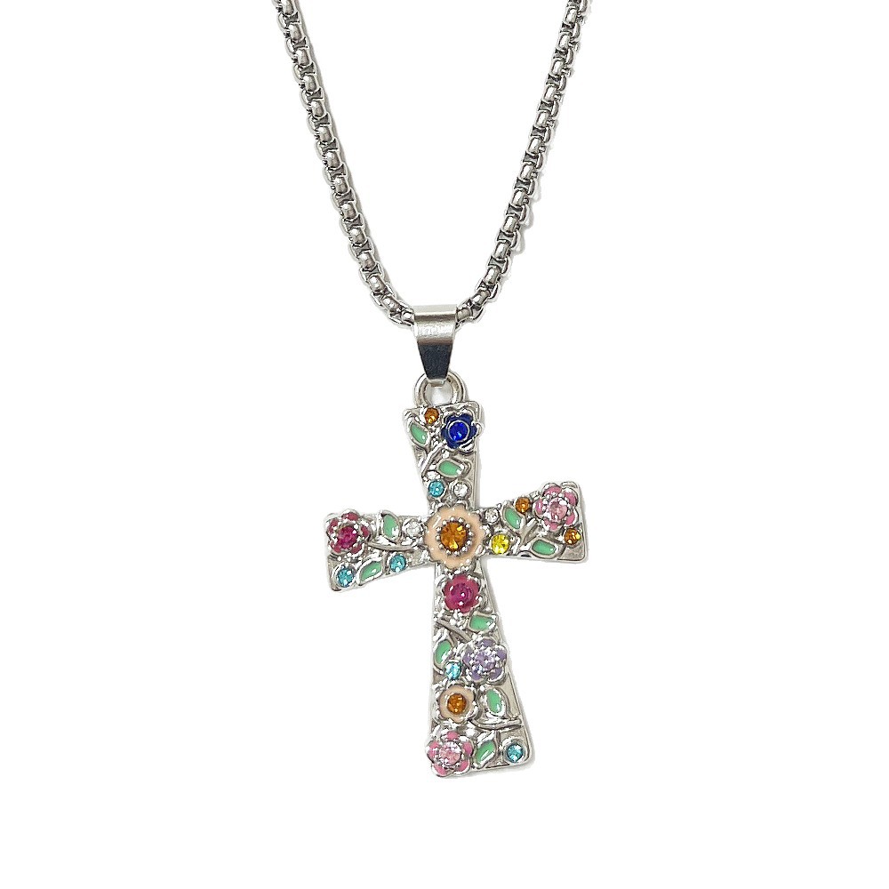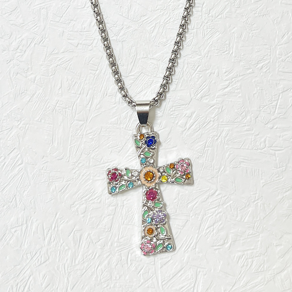 Zink Alloy tröja kedja halsband, Cross, guldfärg pläterade, mode smycken & med strass, fler färger för val, Säljs av PC