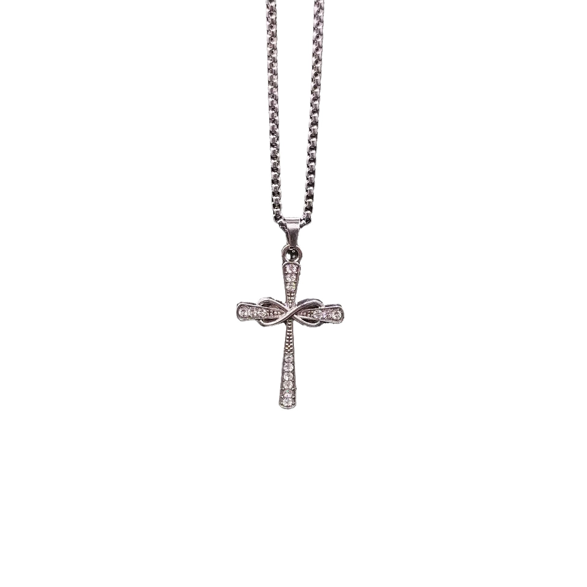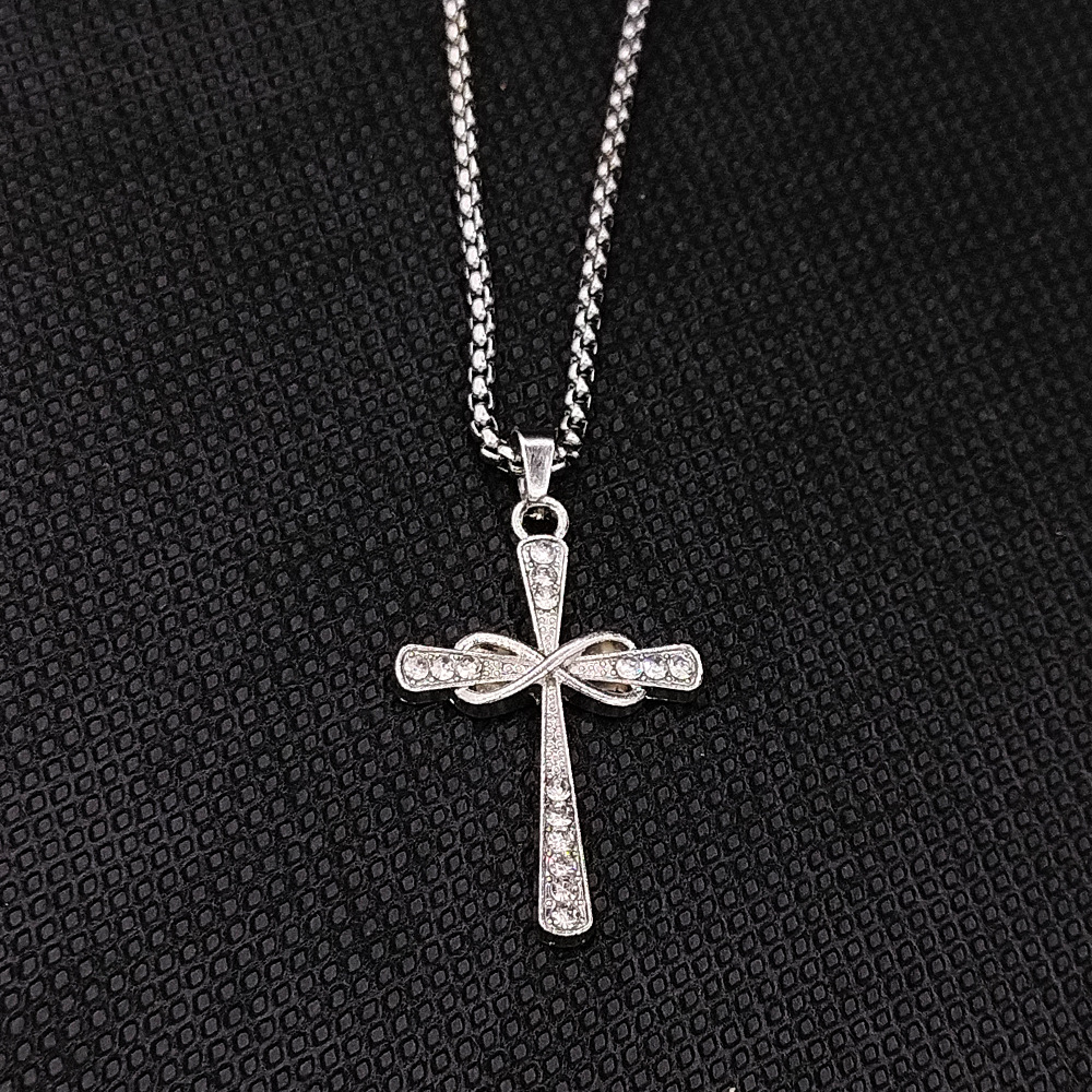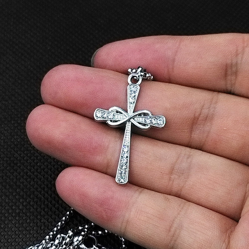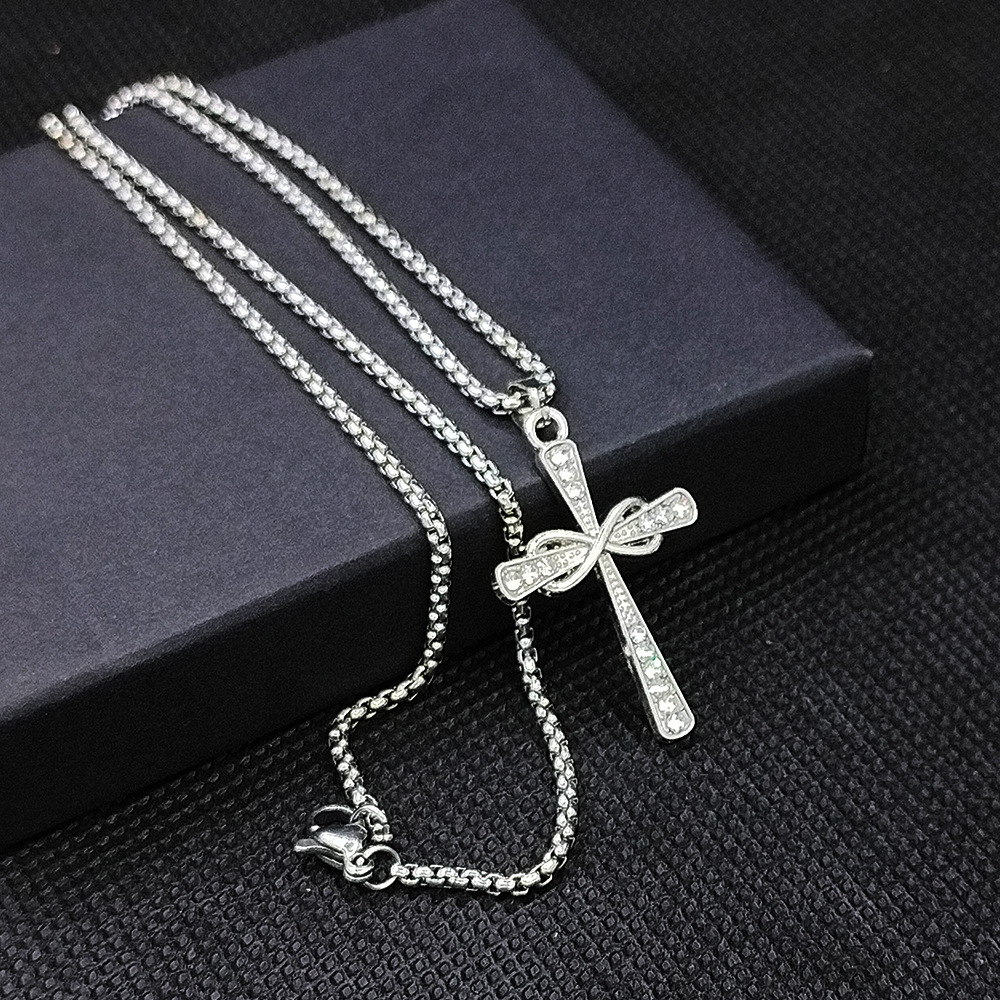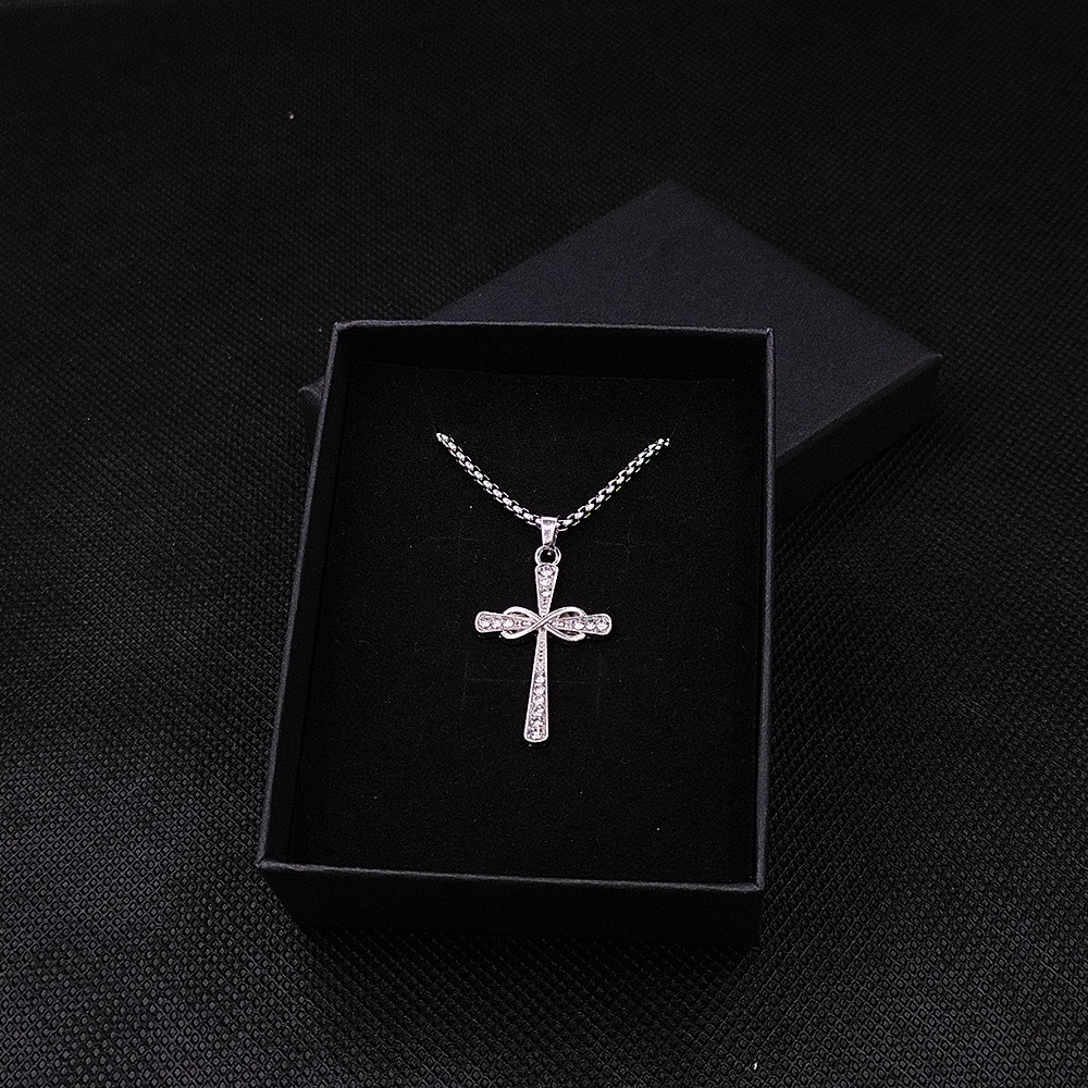 Zink Alloy tröja kedja halsband, Cross, guldfärg pläterade, mode smycken & med strass, silver, Säljs av PC
