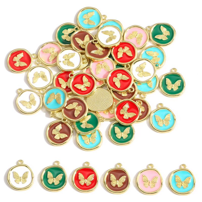 Zink legering emalj hängen, Zink Alloy, Flat Round, guldfärg pläterade, DIY & med fjärilsmönster, fler färger för val, Säljs av PC