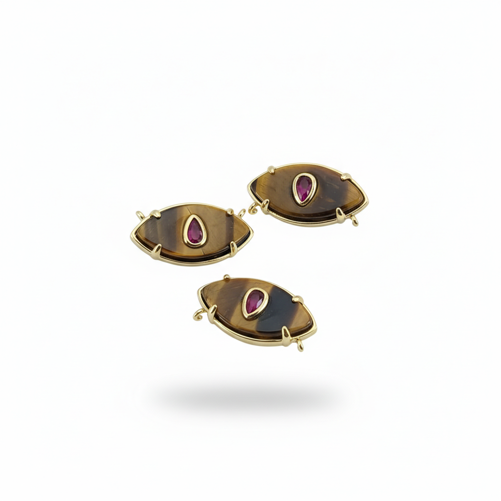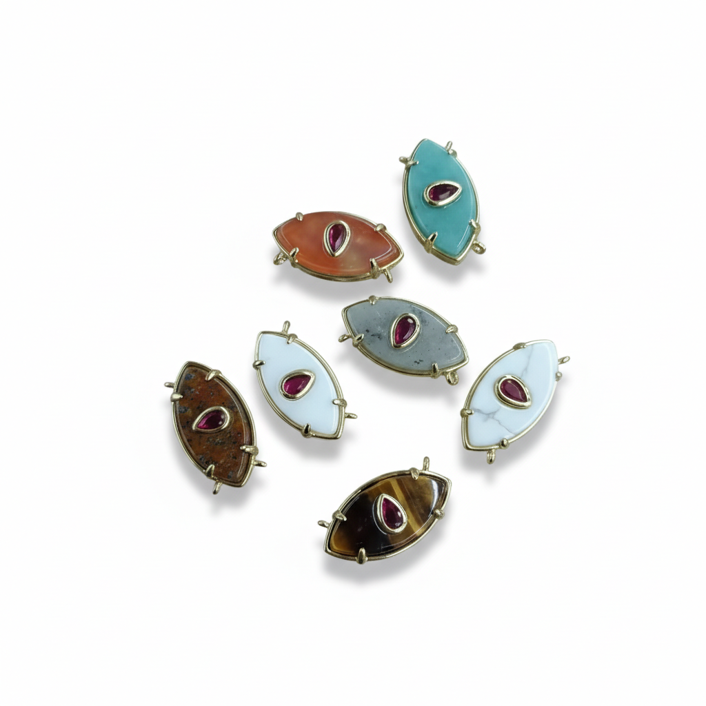 ädelsten Connector, Mässing, med Ädelsten, Evil Eye, guldfärg pläterade, DIY & olika material för val, 22x12mm, Säljs av PC