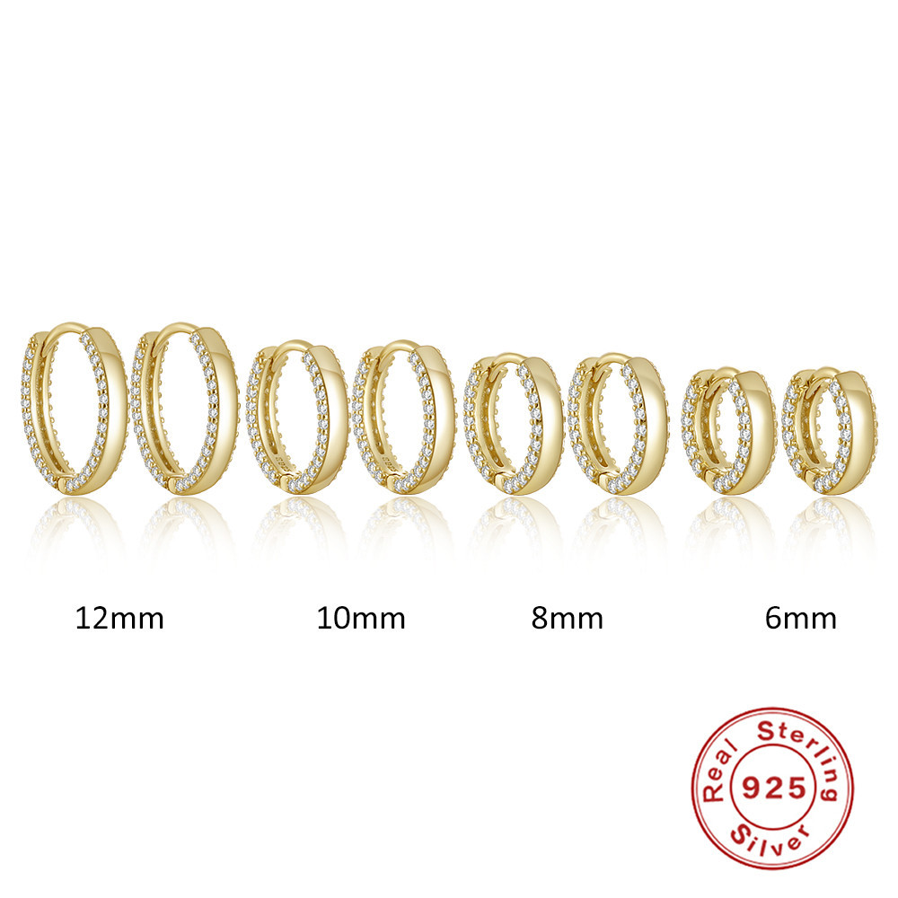 925 Sterling Silver Huggie Hoop Earring, guldfärg pläterade, olika storlek för val & micro bana cubic zirconia & för kvinna, Säljs av Par
