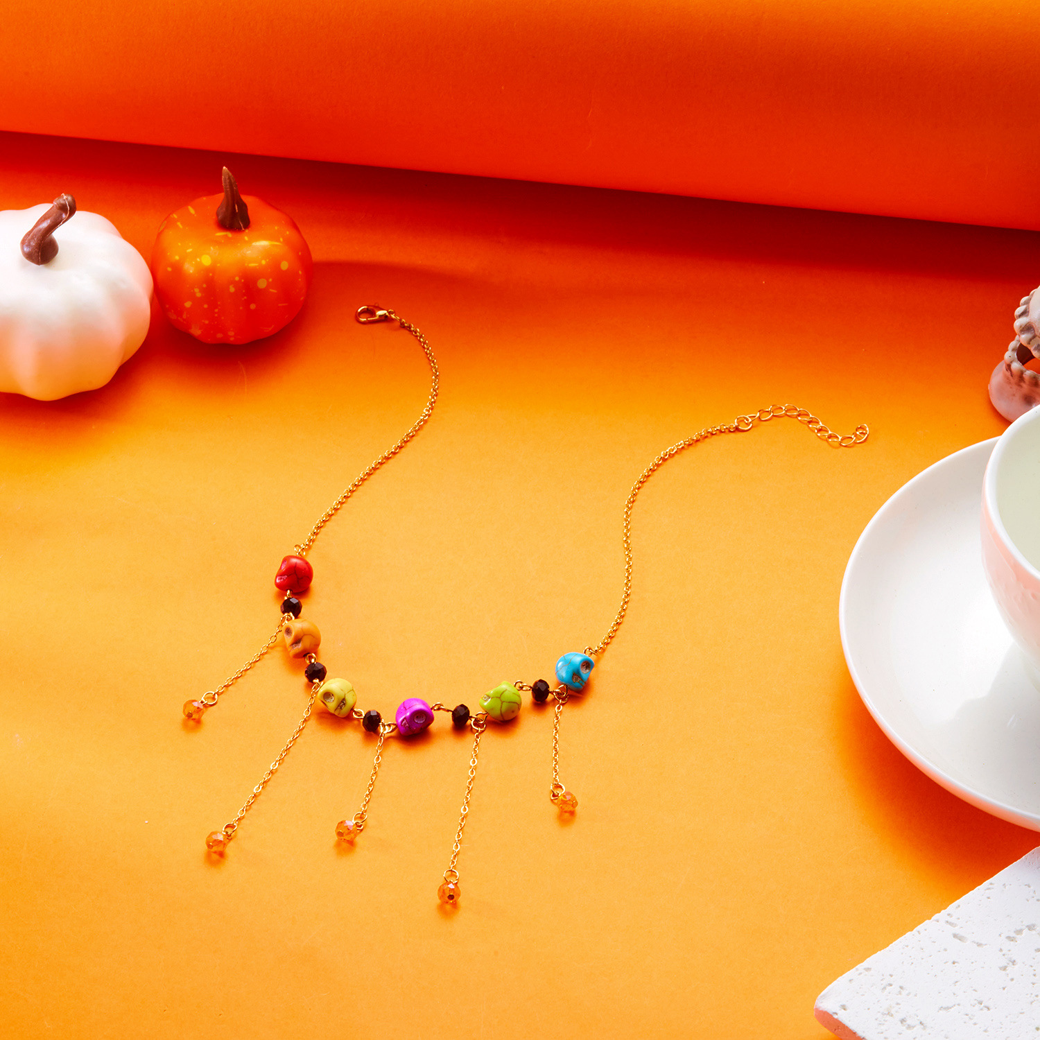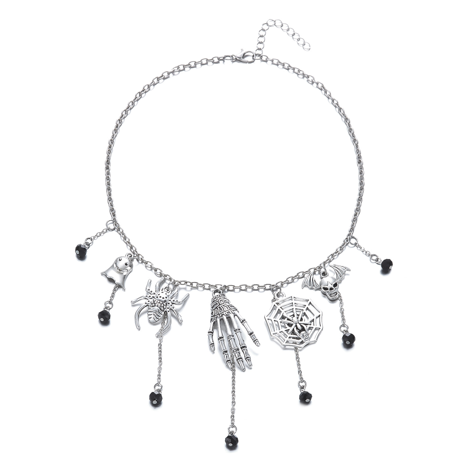 1:骷颅头流苏项链2:南瓜头流苏项链3:软陶圣诞元素项链4:蜘蛛骷颅手流苏项链