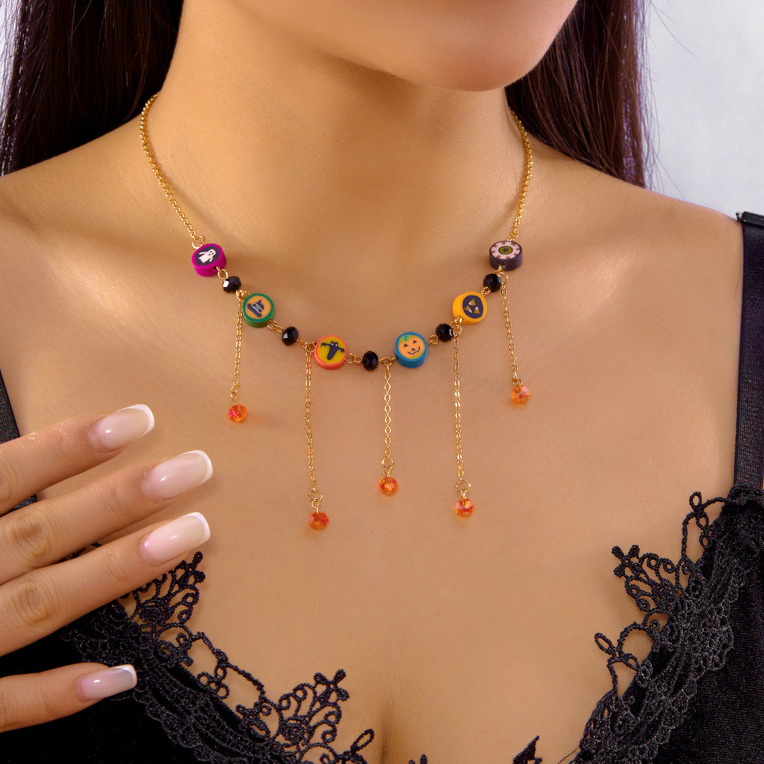 halloween Halsband, Zink Alloy, med Polymer Clay, guldfärg pläterade, Design för halloween & emalj, fler färger för val, Säljs av PC